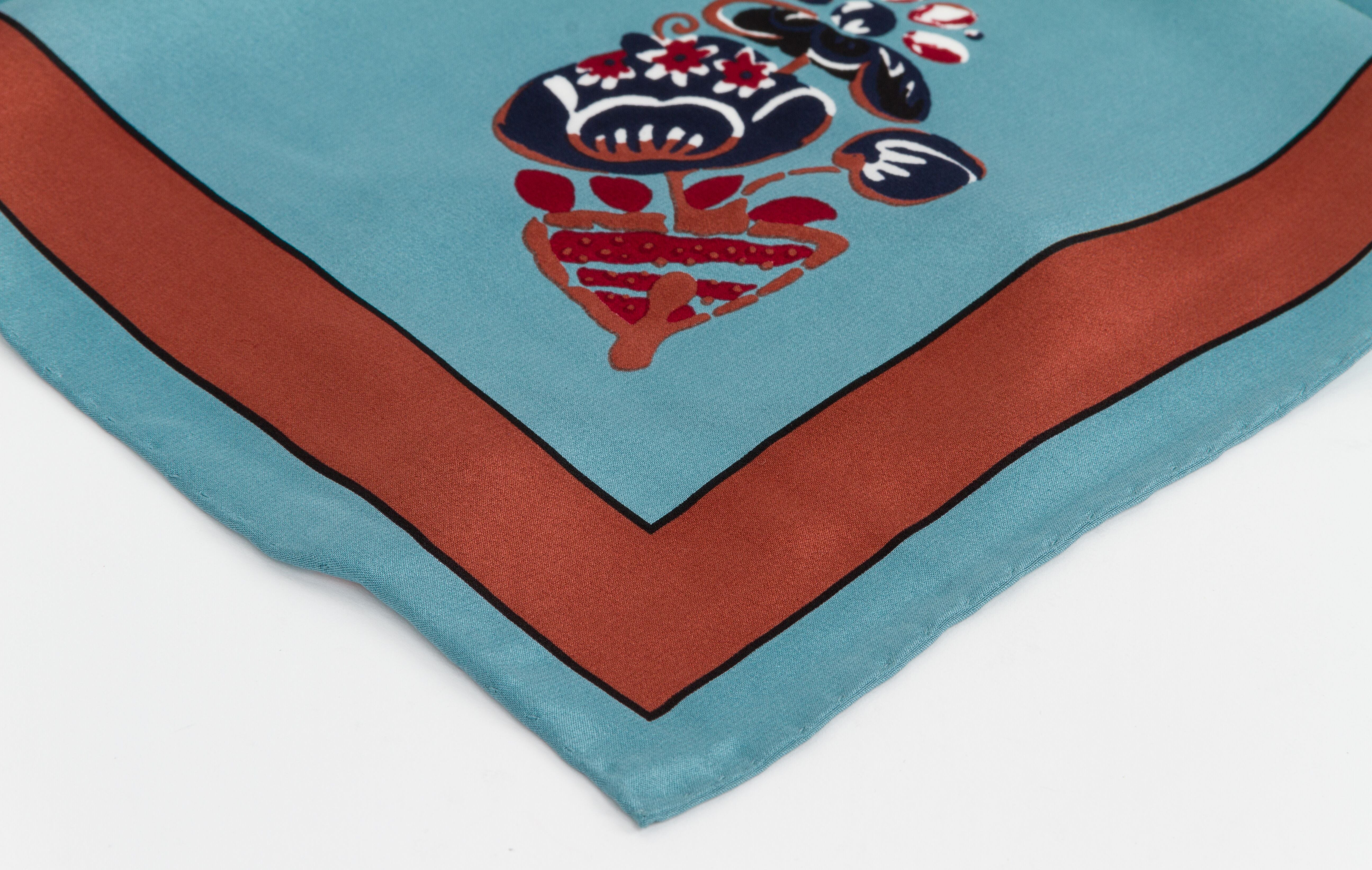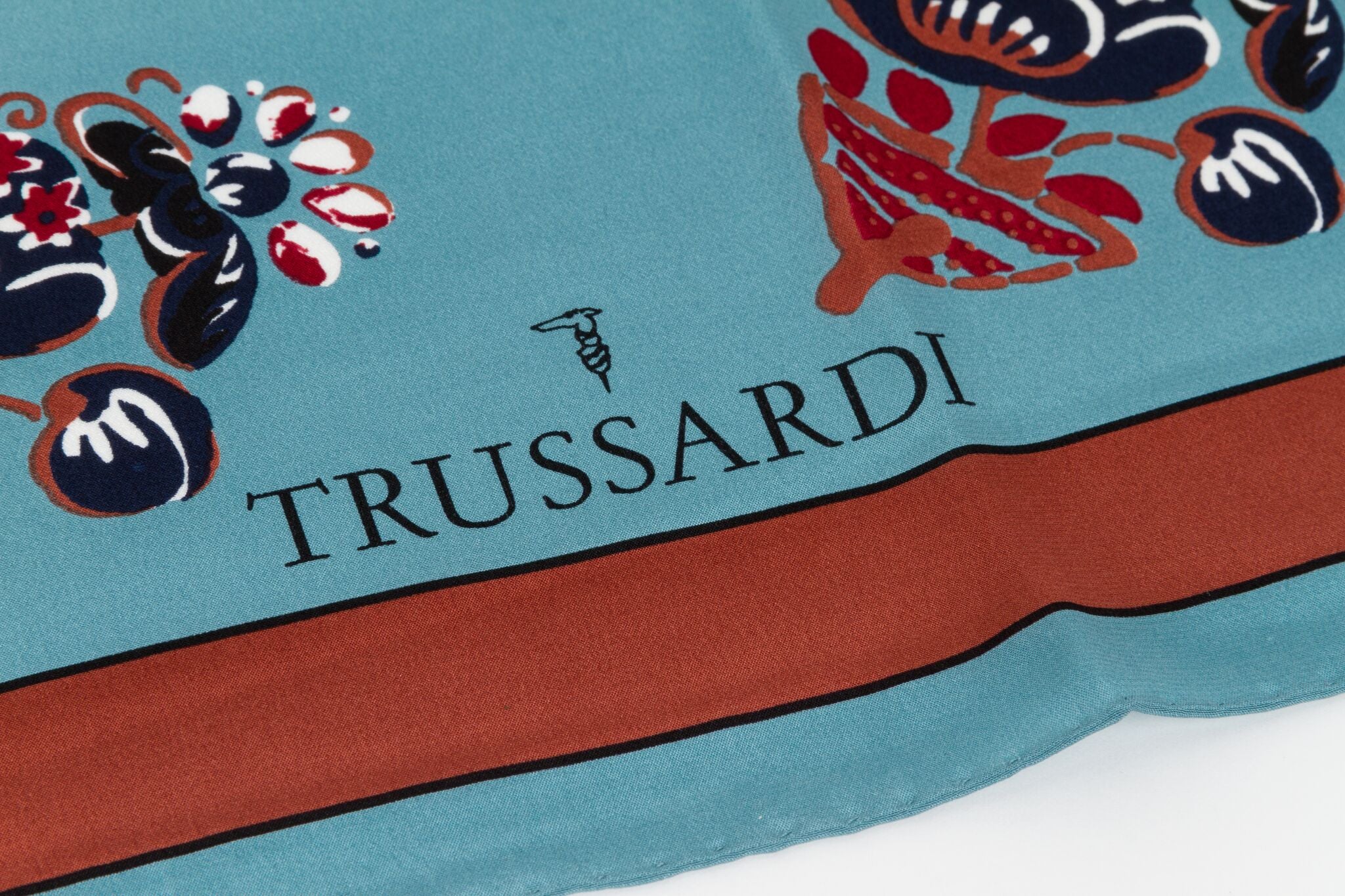 Trussardi brand new with tag avio and brown silk twill scarf. Hand rolled edges.