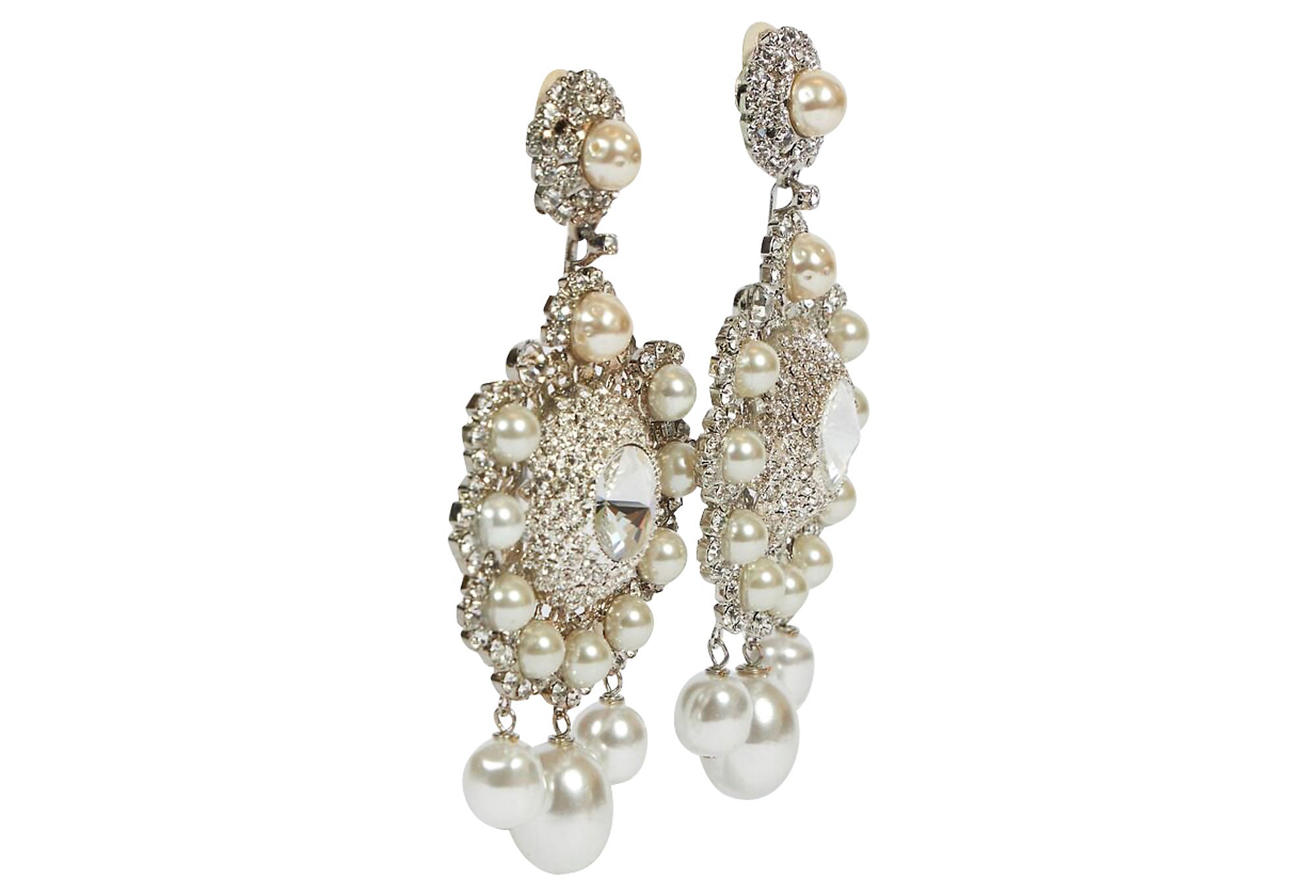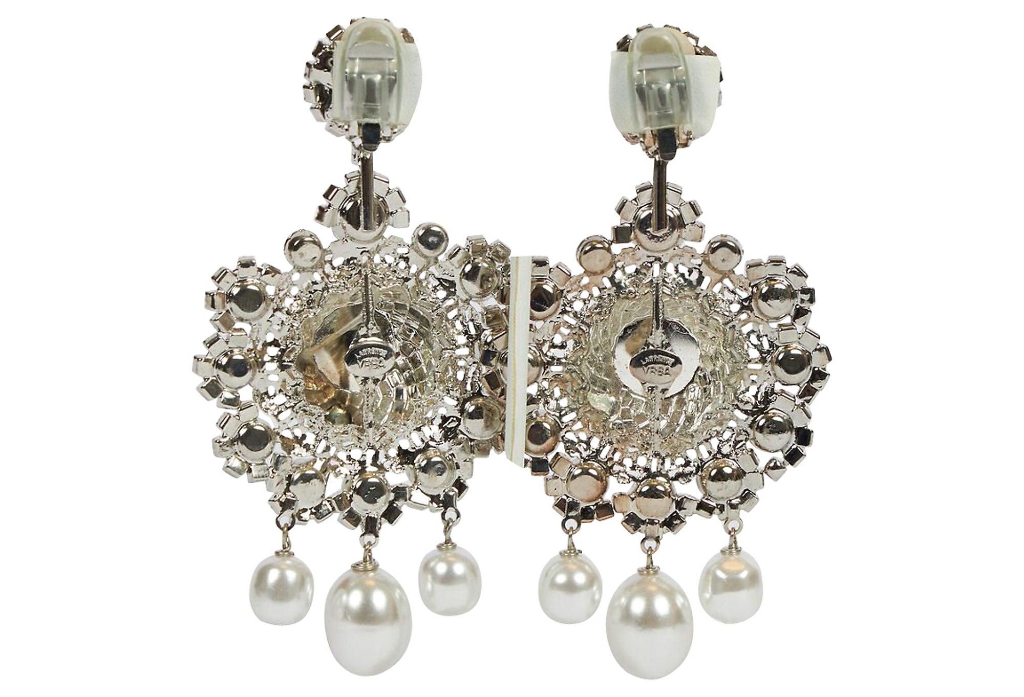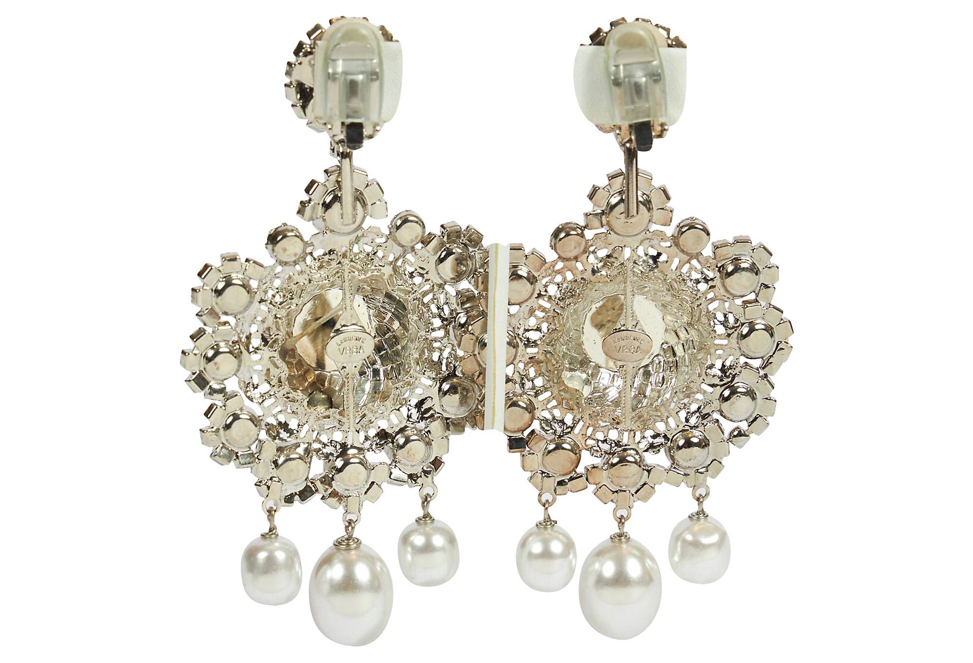 Lawrence Vrba one of a kind pearl and crystal chandelier earrings. Come with velvet pouch.