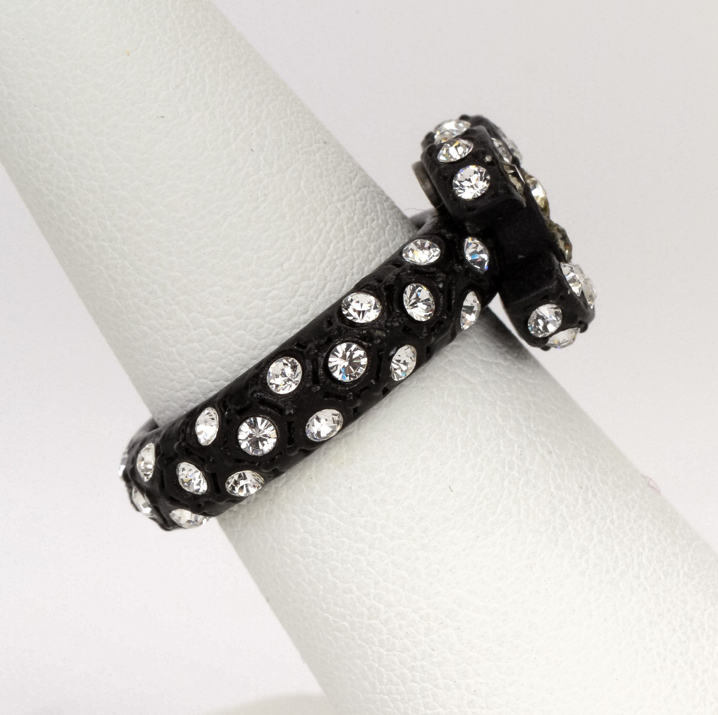 Chanel ring interlocking CC logo design in black metal rhinestones. size 6. stamp 02A. Comes with velvet pouch.