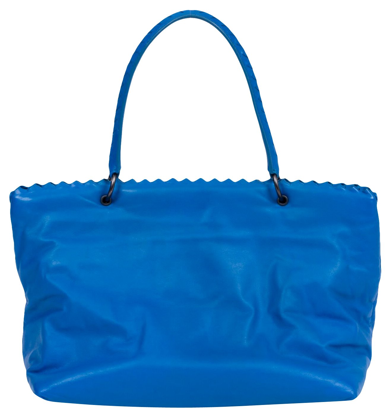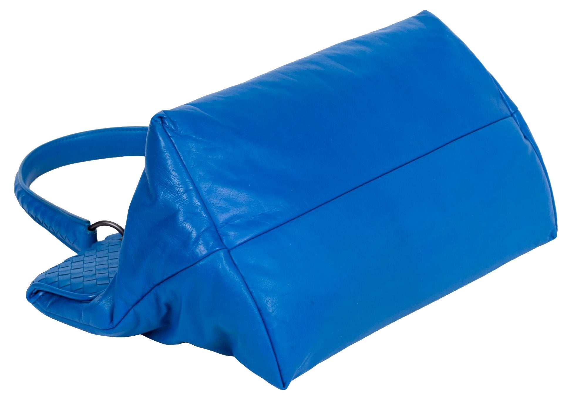 Bottega Veneta large turquoise butter lambskin woven tote. Handle drop 9". Excellent condition. Comes with original duster.