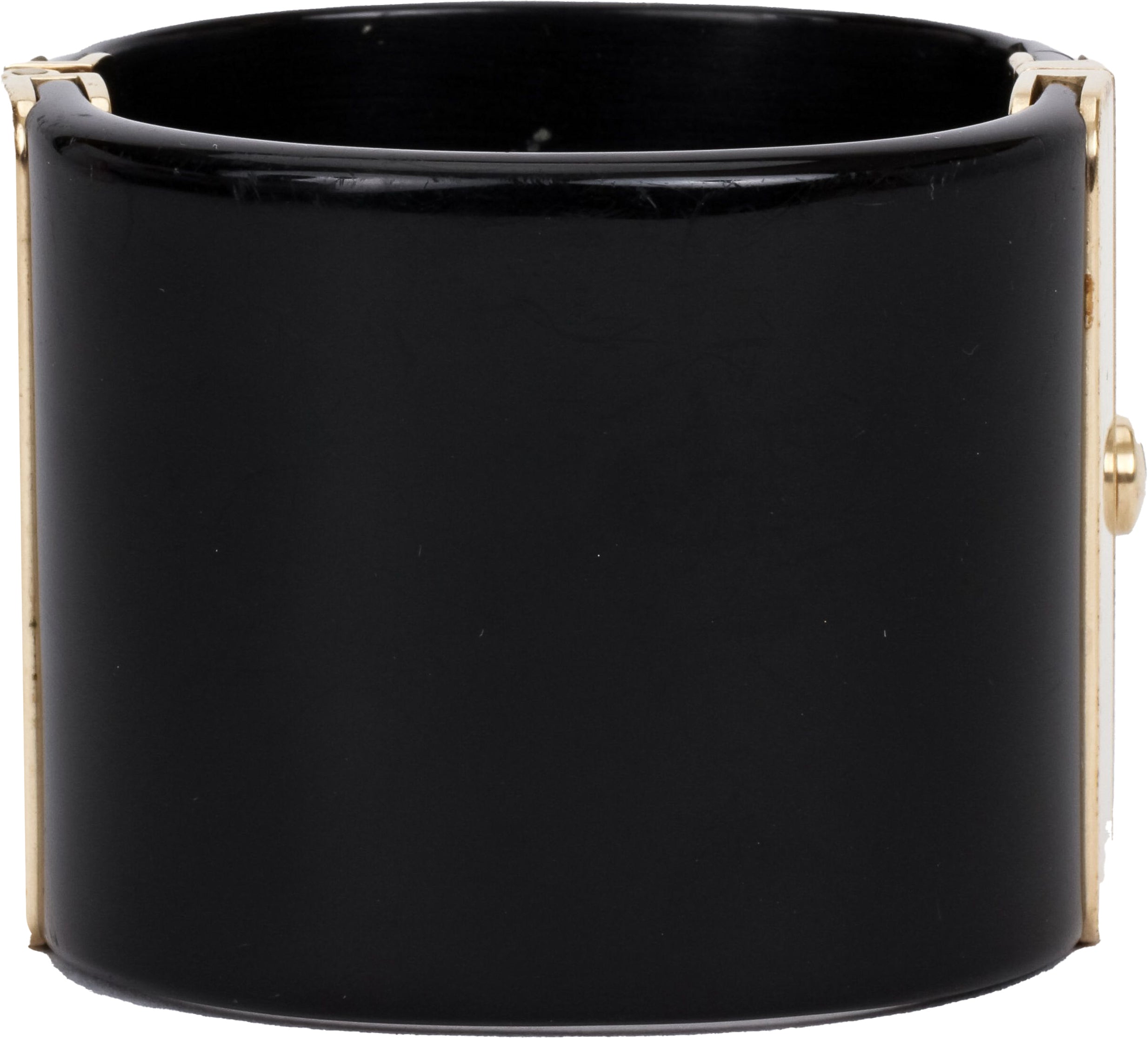 Important Chanel black lucite hinged oval cuff, CC logo with clover. Comes with original box.