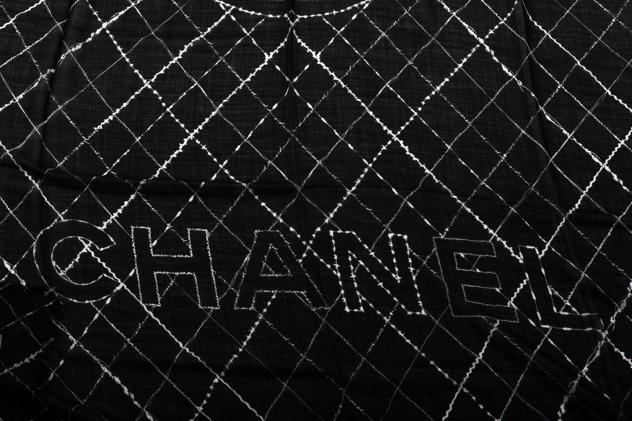 Chanel brand new black and white shawl. Shawl made of cashmere and silk. Care tag.