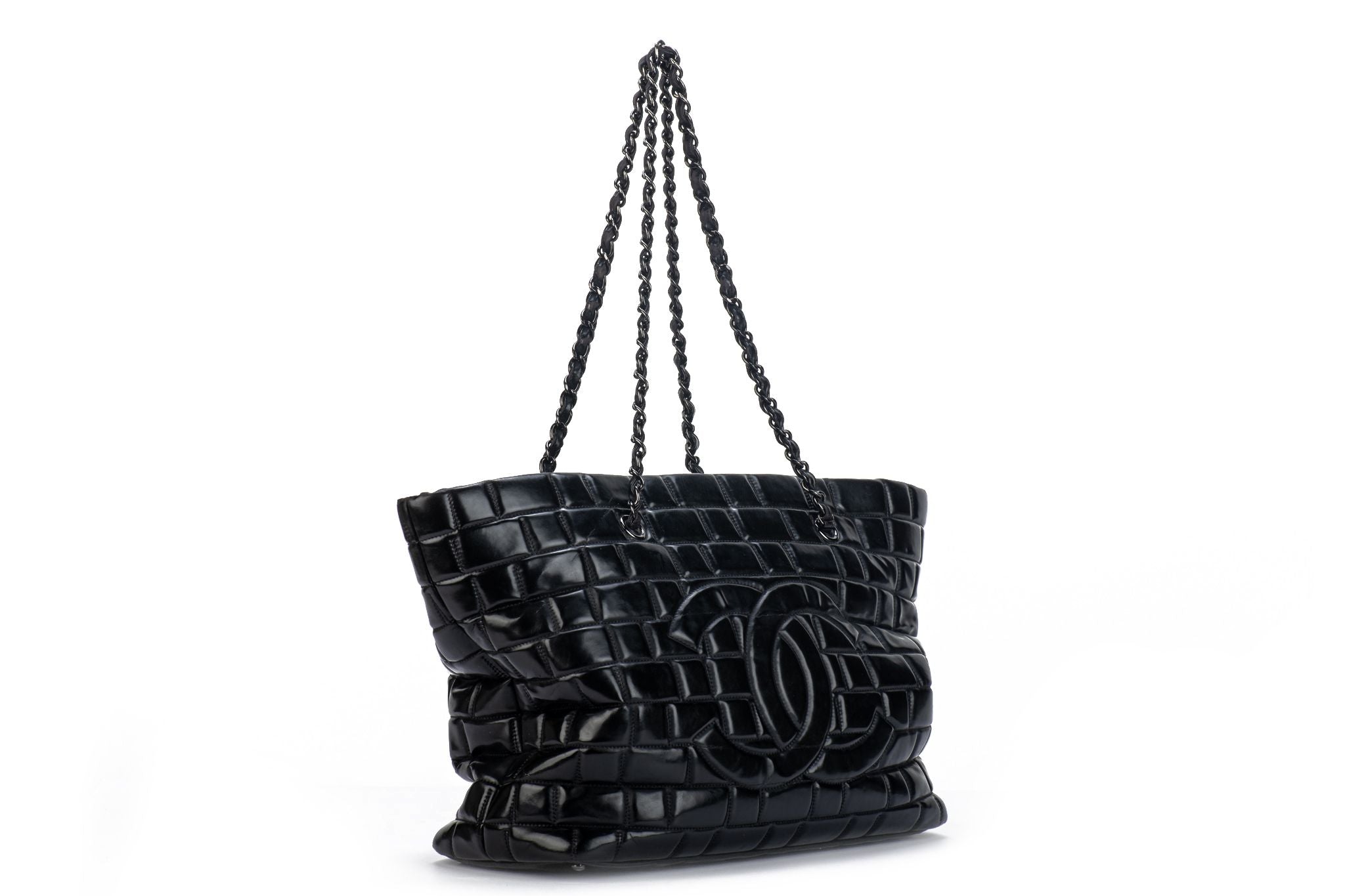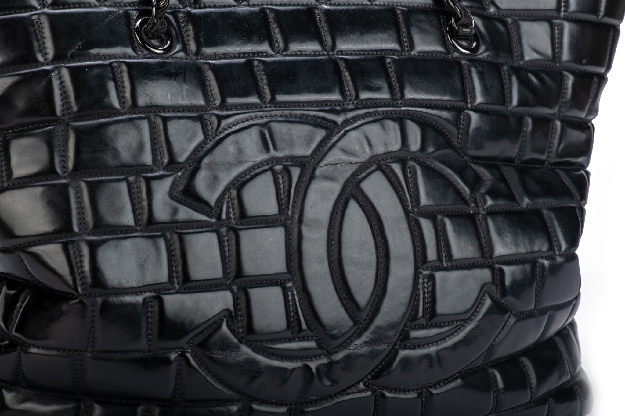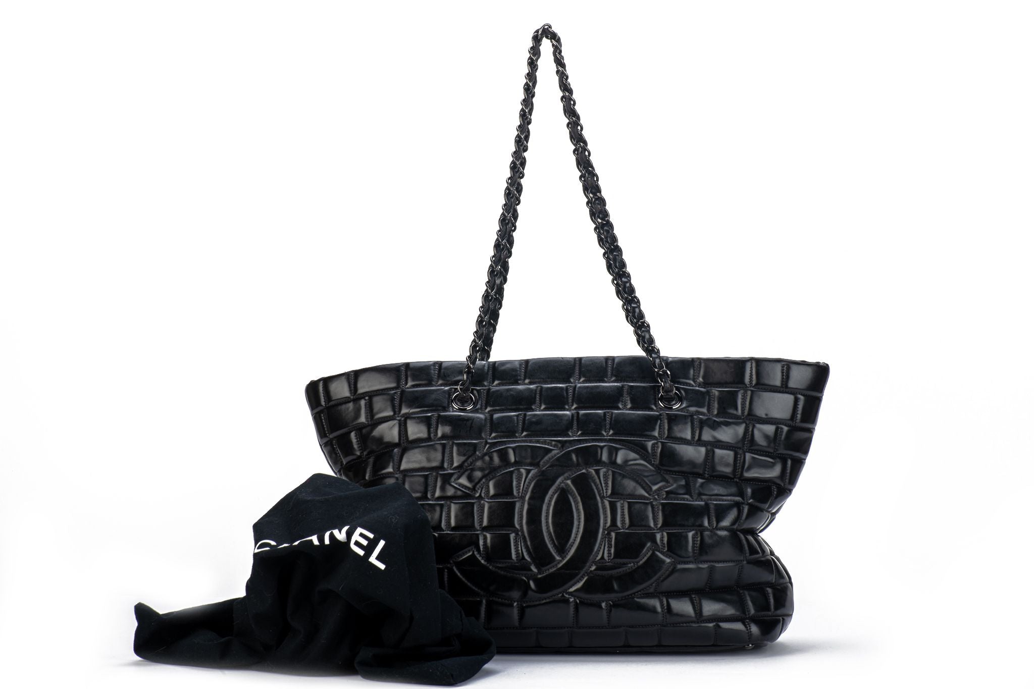 Chanel balck brushed tiles large leather tote, handle drop 11.5". Collection 14, 2011. lightweigth for all seasons . Comes with hologram and original dust cover.