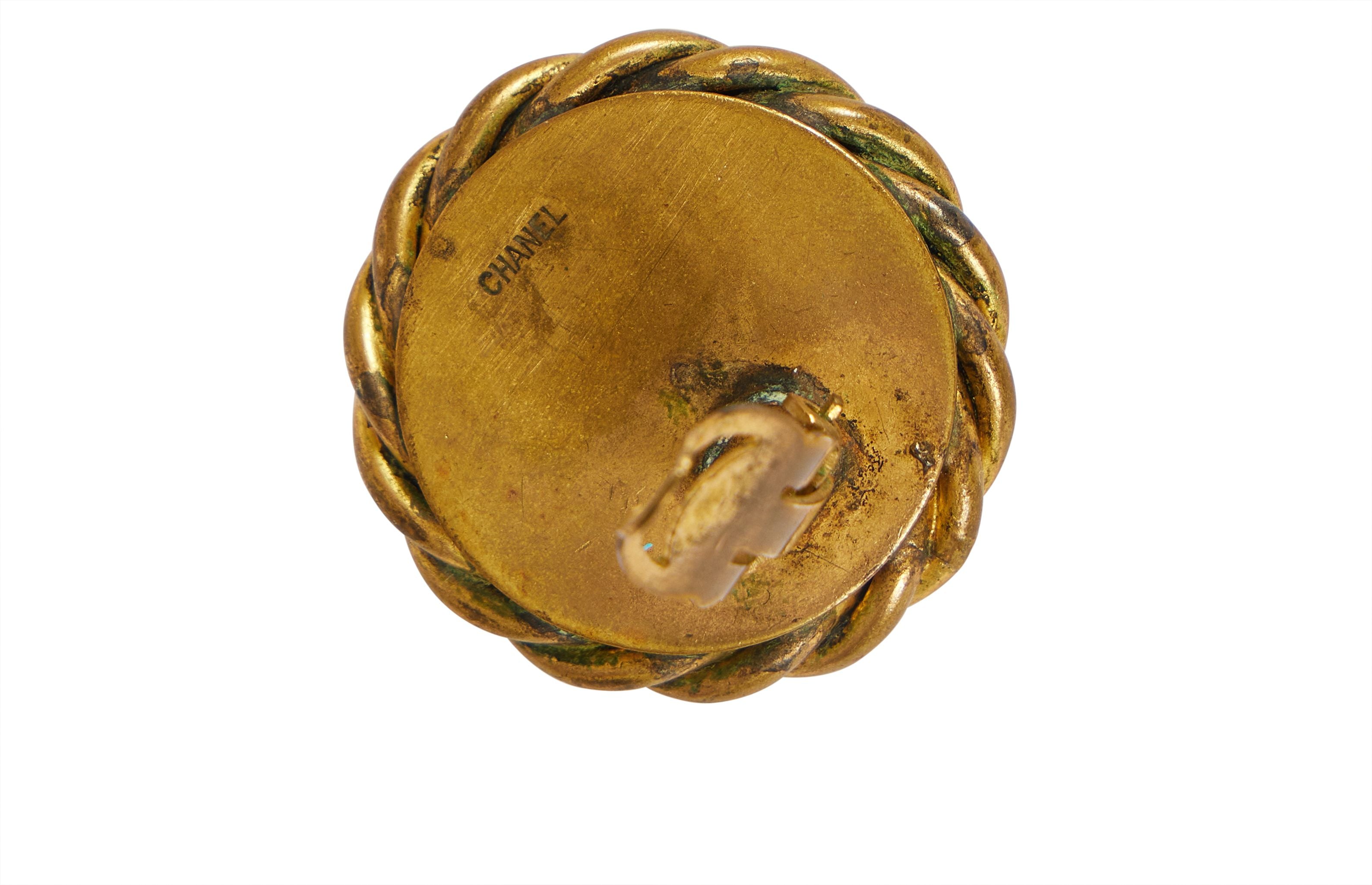 Condition: Very Good; minor wearEra: Vintage: 1.25" L x 1.25" HMaterials: rhodiumColor: gold Chanel oversize...