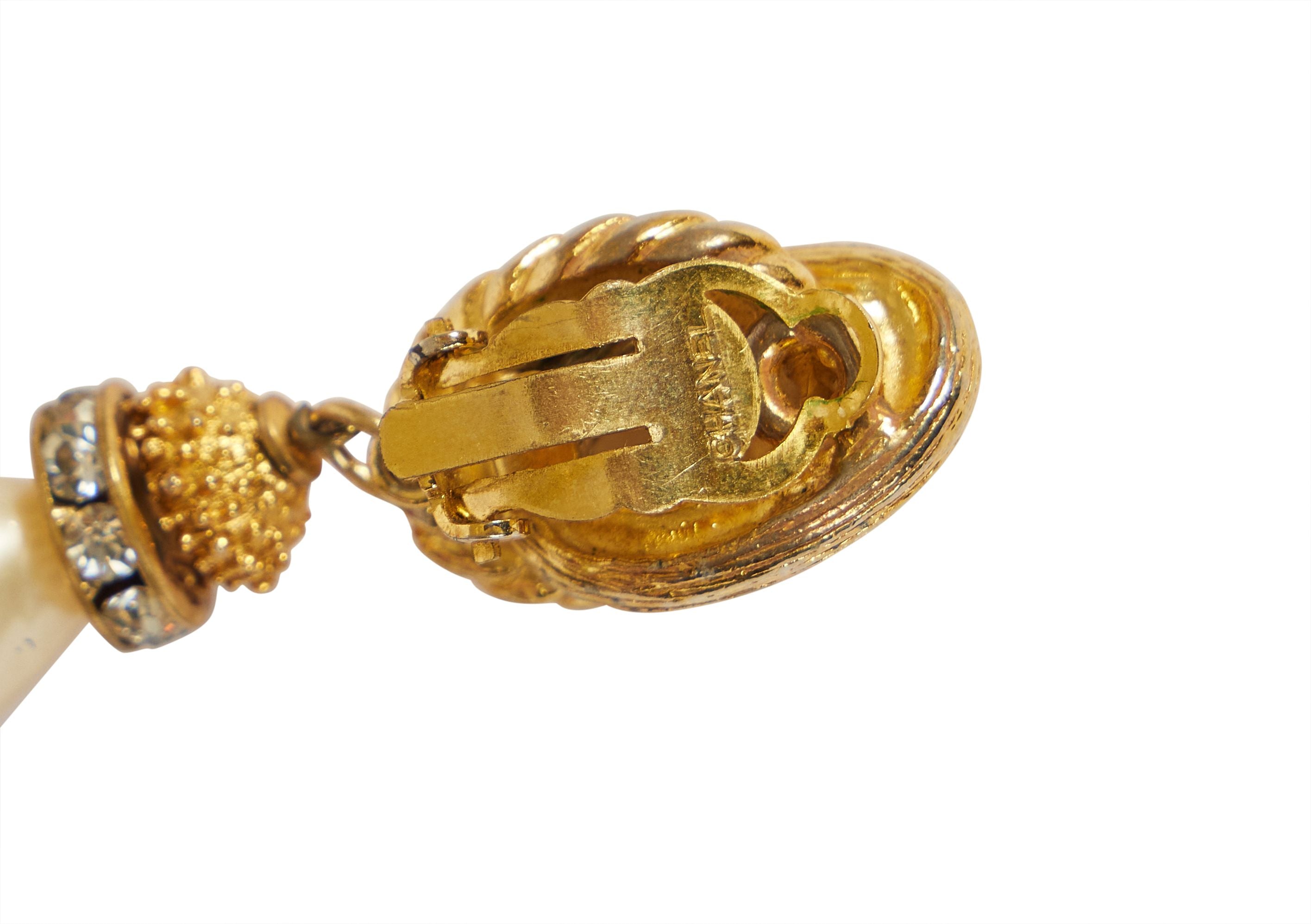 Chanel 70s highly collectible clip earrings . Gripoix pearl dangle and crystal detail. Come with original pouch or box.