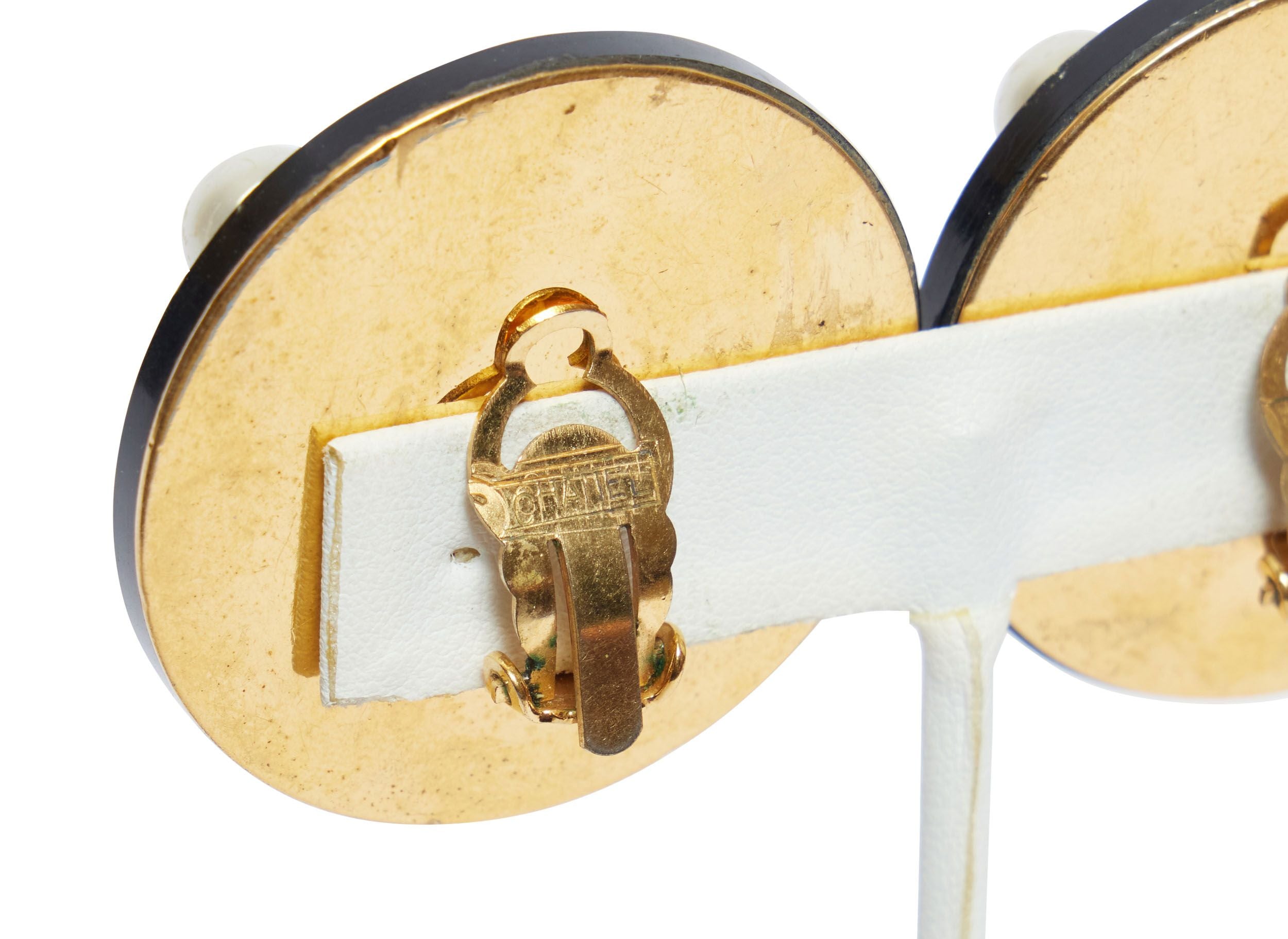 Condition: Very Good; minor wearEra: Vintage: 1.25" L x 1.25" HMaterials: rhodiumColor: gold Chanel oversize...
