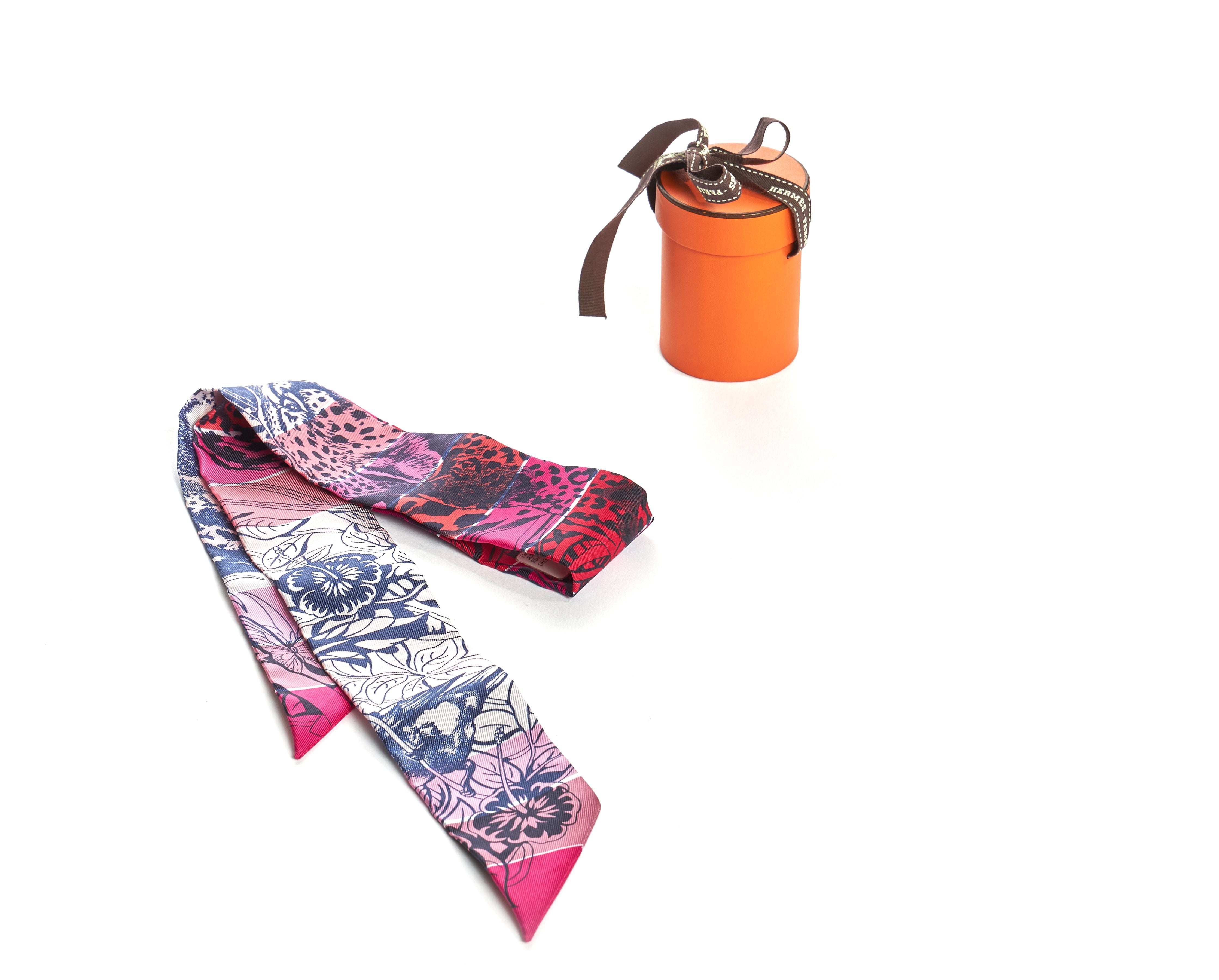 Hermes limited edition Dallet "Jungle Love" twilly with gradient pink color. Brand new in original box.