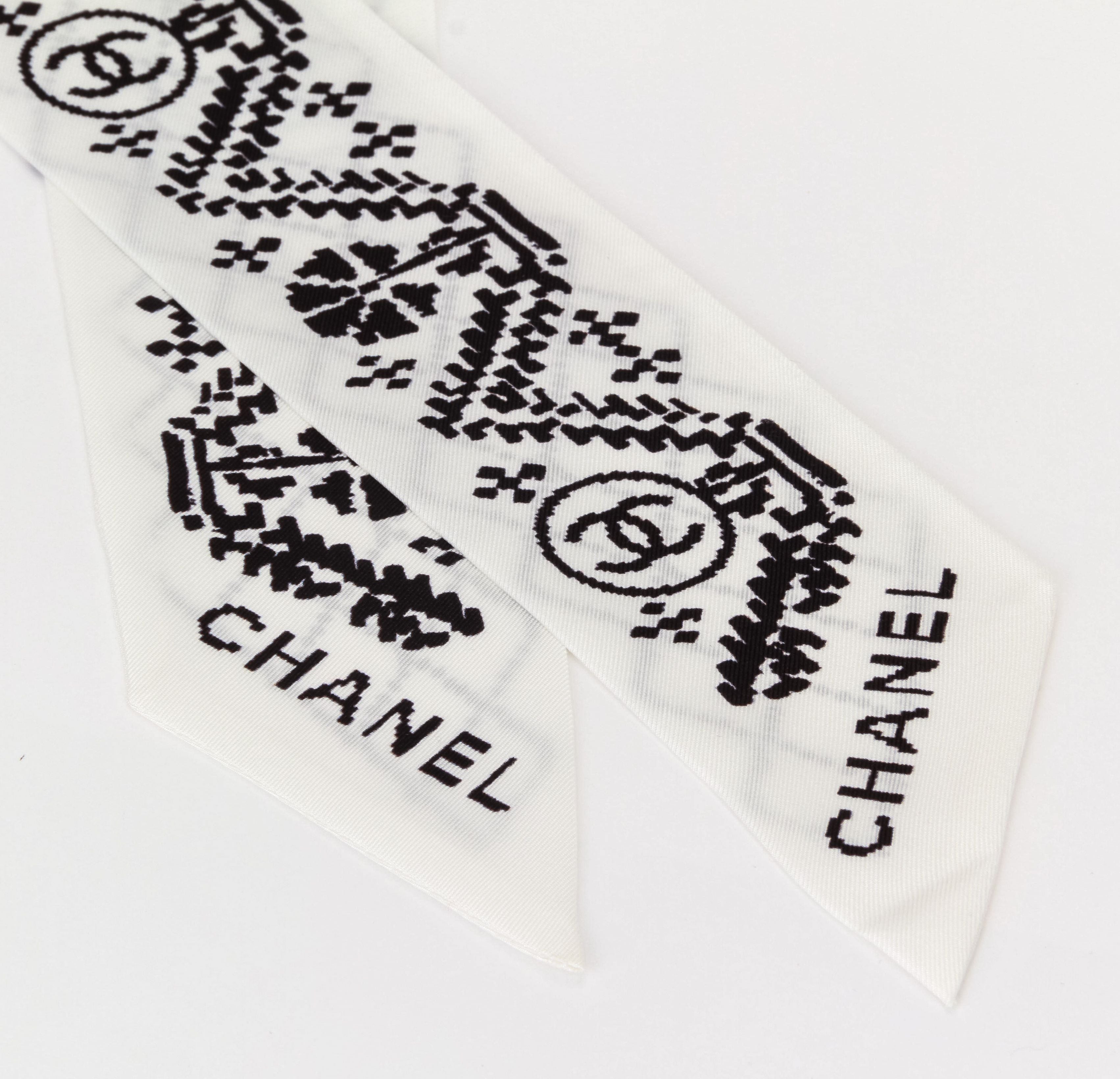 Chanel new black/white silk twilly with stitched logo design. Missing label and tag.