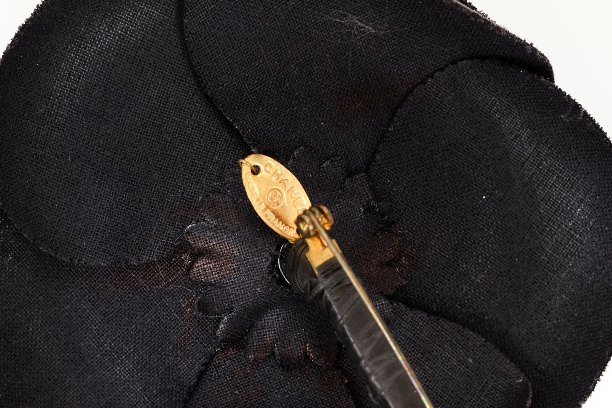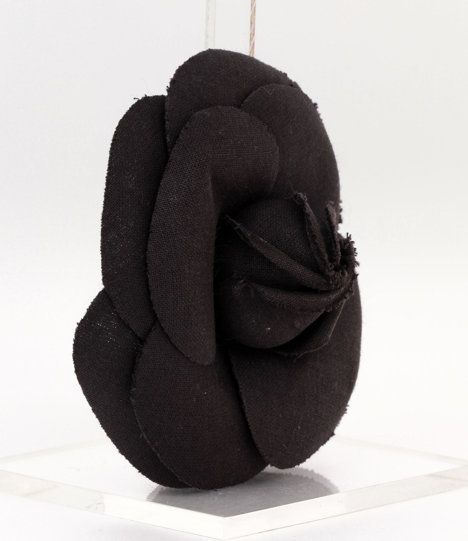 Chanel large black fabric camelia brooch