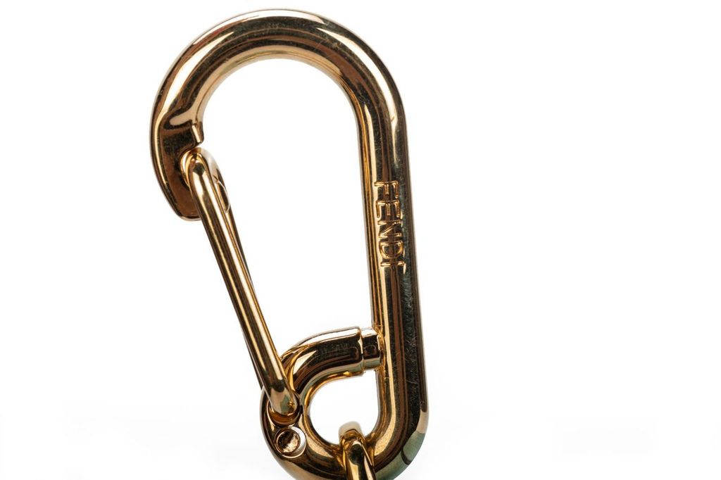 Fendi charm crafted of leather in light blue with a gold clasp. The charm can be used as an AirPod case. The piece is brand new and comes with a box.