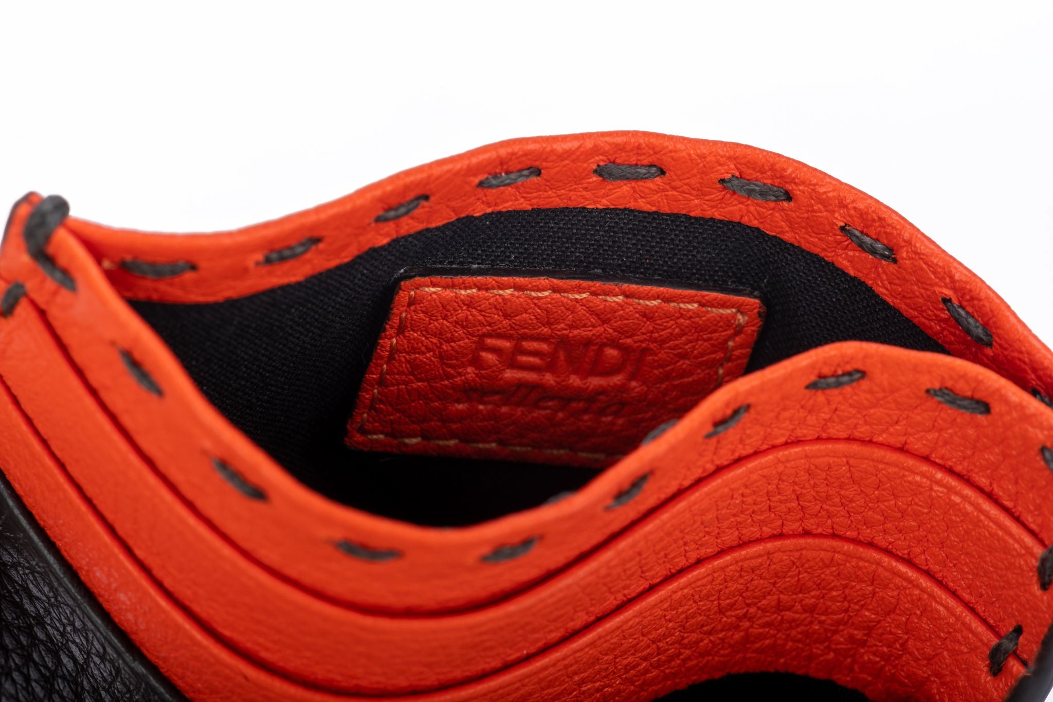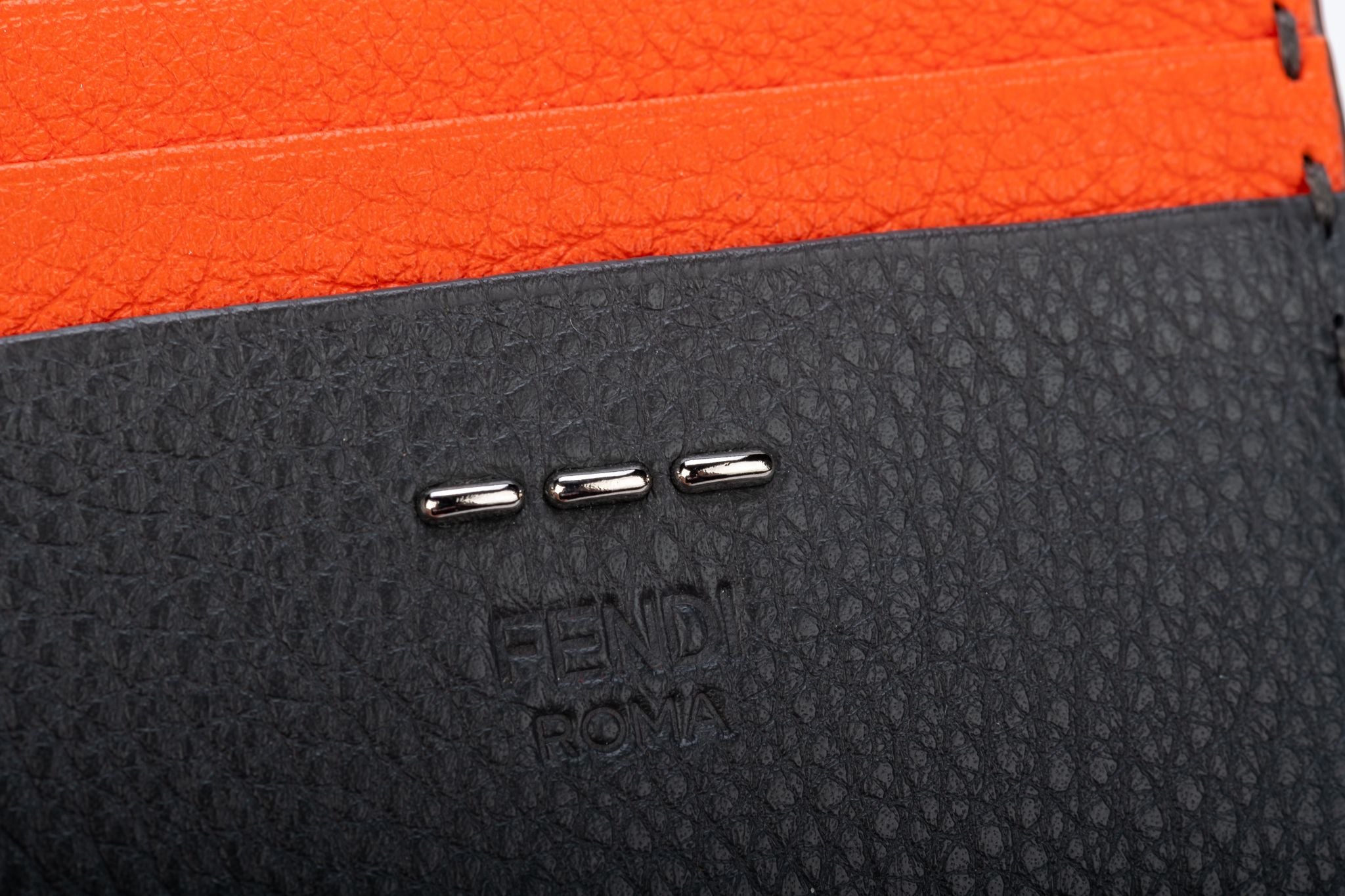 Fendi new limited edition selleria hand stitched two tone credit card wallet. Grey and coral leather. Box and original dustcover.